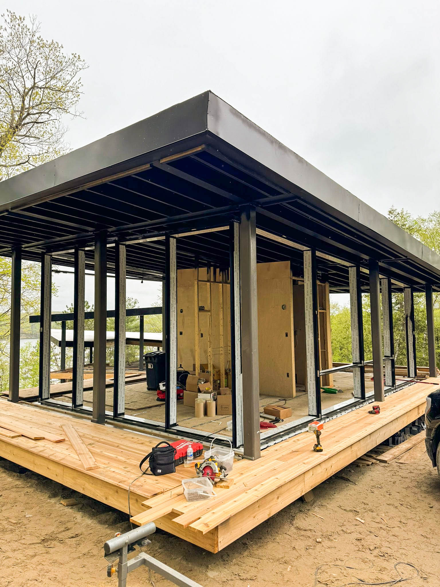 A lot of construction progress has been made in the past winter. The installation of the roof, floor, and interior walls is finished. Expect the completion of The Devil Lake House by the end of June.