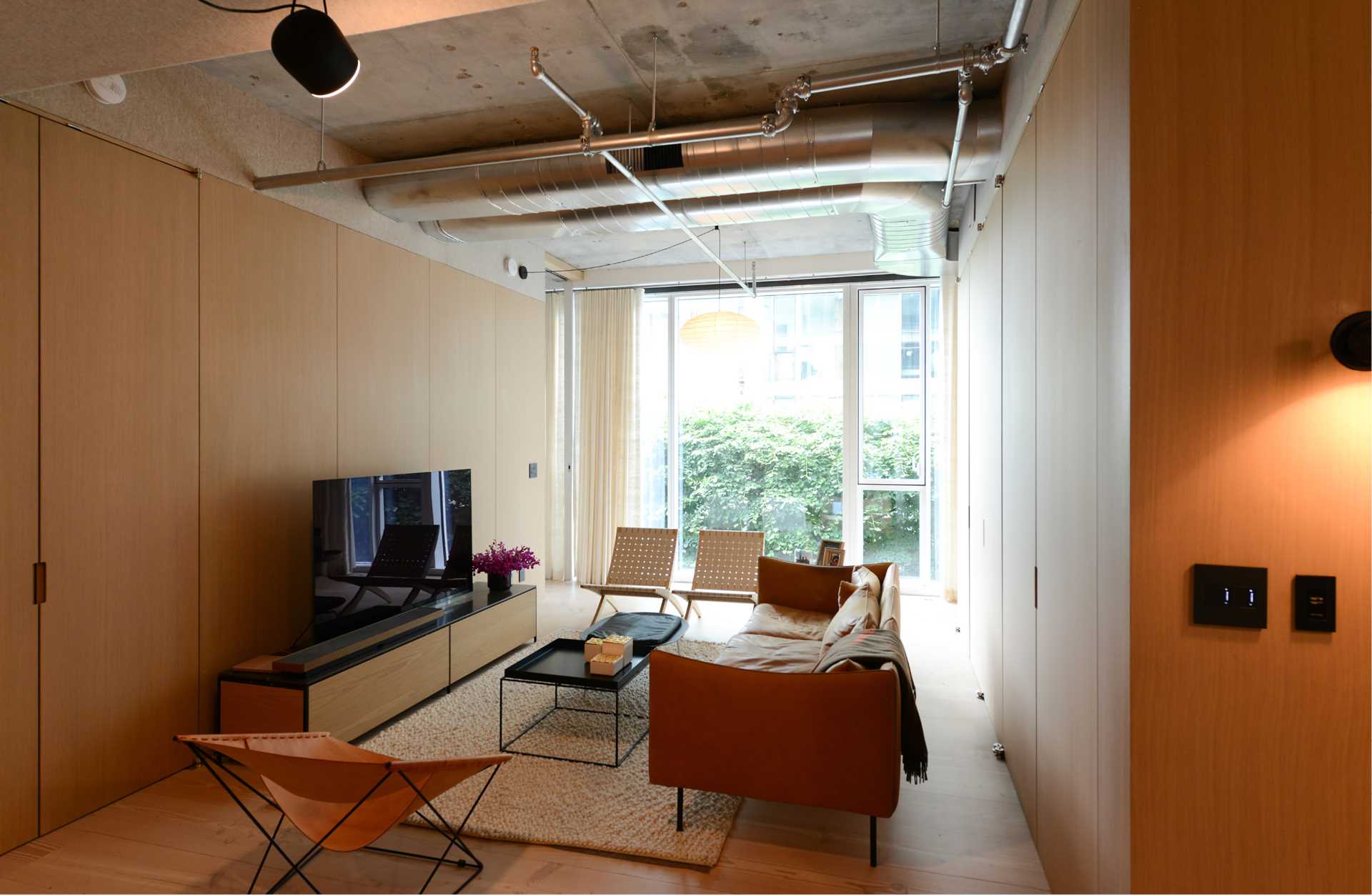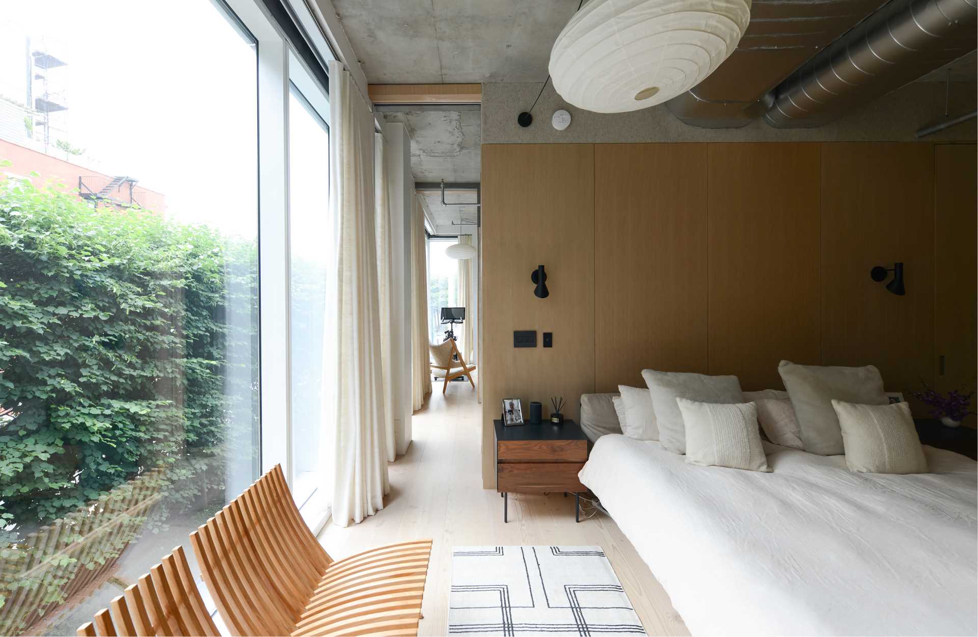 Les architectes ont tout d’abord combiné les deux unités, re-dessinant toutes les pièces dans un plan matriciel cohésif puis ils ont inséré une « fabrique de jardin » (construction à vocation ornementale prenant part à une composition paysagère au sein d’un parc ou d’un jardin) qui relie l’intérieur à la voie verte adjacente de la rivière Hudson.